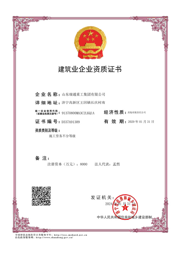 山東瑞通重工集團有限公司,位于文化底蘊豐厚的孔孟之鄉(xiāng)的山東濟寧國家高新技術(shù)開發(fā)區(qū),公司成立于2015年,占地面積50000平方米,從業(yè)人員300余名,是一家專注于鋼結(jié)構(gòu)建筑工程的一體化解決方案服務商,公司近年來榮獲多項鋼結(jié)構(gòu)工程總承包資質(zhì),專業(yè)承包資質(zhì),國家高新技術(shù)企業(yè),省市級信用企業(yè),鋼結(jié)構(gòu)工程金獎及多項鋼結(jié)構(gòu)制造施工專利證書...
